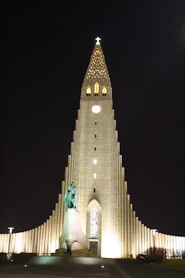 Hallgrímskirkja. Yer man is Leif Eriksson, a thank you present from the US for having discovered them. |