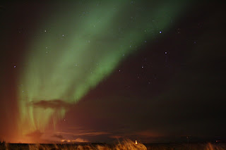 The man with the top-hat tied to his head is the chef - "the most important man in Sólheimar", as he refers to himself. They then proceeded to sing songs in Icelandic (we the interns proceeded to mime along), and set off fireworks. This was followed by a hasty retreat down the hill and a bowl of hot soup at the end of it all. A very odd, enjoyable evening. But wait, there's more! Paulo, the biologist from Portugal, has been religiously checking the skies every couple of hours each night for any sign of the Northern Lights, and late on Thursday we got lucky. It may have been -15°C, but man oh man was it worth it. They were a bit faint as far as the Northern Lights go, but they were still a sight to behold. Eerie, silent, and completely mystifying; a sight I never thought I'd really get to see in person. After a few minutes of jaw-agape staring, I ran in for a make-shift tripod - a chair and a bag of flour - and so was able to get a few shots before they started to fade away. Look for the shooting star towards the lower right. So that was pretty ridiculously cool. Northern Lights, one to check off the list. For more photos, check here. Stop by again soon (hoping to update at least once a week) for more tales of the unknown in the Land of Ice! |