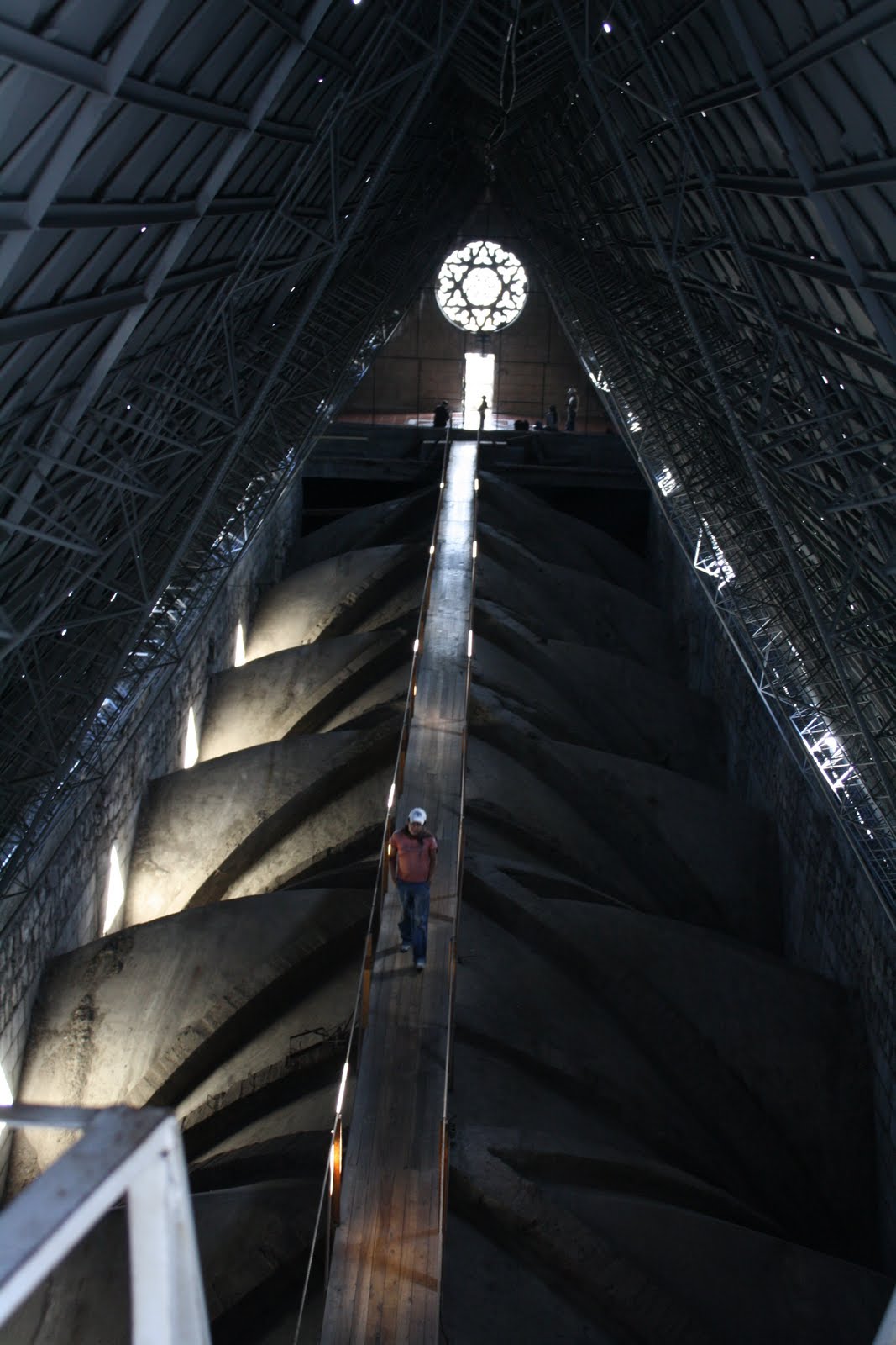 My South American adventure started on a high note; very high in fact: 2,800 meters/9,200 feet above sea level high. Following advice from guide books and medical professionals, I decided to take it handy my first day to allow myself to acclimate to the lack of oxygen in the air. An easy day travelling around the museums and perhaps visiting La Basílica, which is one of the dominating features of the impressive Quito skyline, sounded like a safe bet. However, most of the museums were closed for no reason that I could find, and the one I did manage to get into was a confusing mix of Precolumbian huts and dolls dressed as monks (I later realised that there was some kind of order to it, but my route led to an anachronistic and slightly perplexing impression of Ecuadorian history). Mildly defeated, I puffed my way up Calle Venezuela to La Basílica. Its imposing Gothic architecture belies its fairly recent construction (by Basilica standards anyway), as it was only built in the late 19th century. That said, what La Basílica lacks in age, it makes up for in accessibility. For $2, I was able to ramble throughout the majority of the sanctified innards of the building, which included gang-planking my way across the spine of the roof to a lookout point, and climbing all 115 meters to the top of the belfry hand over hand up increasingly smaller ladders. So much for taking it handy. The view, however, was well worth it.