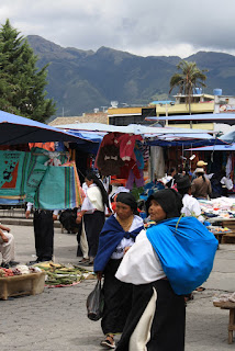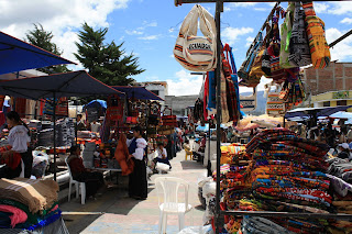The next day I took a tour arranged by the hostel where I was staying to Otavalo, which has been deemed one of the biggest artisan markets in South America. "But...", you may say, "Why would you go to an artisan market on the second day of your four-month trip during which time you have to carry all of your possessions around on your back, á la Monsieur Snail?" Why indeed, my estute friend, why indeed... Anyway, to the market I went, and artisanial objects I bought. The market itself was interesting enough, tourist stands rubbing elbows with sizzling vats of fried pig and gold chains, but I was surprised to hear it´s in Lonely Planet´s Top 10 for South America. If you´re planning to bypass a trip to Machu Picchu or Iguazu to get your shop on in Otavalo, don´t. Unless fuzzy llama toys and gringo pants are your thing.