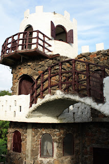 The enchantment started as soon as the airplane touched down in the tiny lean-to airport on the isle of Baltra. As the airplane taxied down the runway, it was escorted by dozens of giant dragonflies, officious and determined in their duties. Due to a lucky seat placement, my new German friend had made the acquaintance of a man who was visiting his family in Puerto Ayura, the main port of the Galapagos, and his nephew was happy to help us find a place to stay and offer adice. The place in question ended up being the hotel where he worked and was a bit more than we´d hoped to pay, but it was called El Castillo and it actually was a castle. Our room had a balcony, there was a guitar and a couple of hammocks ready for use, and the fresh juice for the morning breakfast came from the fruit trees in the garden. Never one to turn down a jammy turn of events, we settled in for the night.