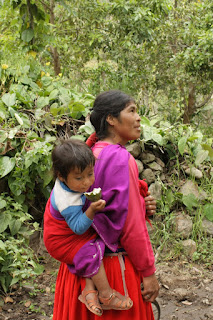 It`s an indigenous community, so the first language is Quichwa. Most of the younger people speak Spanish as well, but the older generation often confuses the two languages, leading to an all-but-incomprehensible melange we liked to call ´Spechwa`. Although the men have lost their traditional white trousers and poncho as they made their way into mainstream society for work, the women still don the vibrant skirts and embroidered sashes, shawls, and hairwraps. At first I just thought they looked nice, but I soon discovered how seriously useful their clothes are. The sashes become utility belts to hold machetes, hand sythes, and the dyed cactus fibres the women are constantly hand-spinning to sew into little bags, shigras, which have come to epitomise the artesanian work of the village; and the shawls are tied in an intricate system of knots to hold melons, children, and everything in between. Everyone in the village is under 5 feet, so for the first time in my life I was classified as tall. I also, by Nizaggian standards, was over the hill; in a town where the average marriage age is about 17, I was definitely past my prime. One of the first questions you`ll be asked upon arriving to the village is, ´Estás casada?´ - ´Are you married?` (On the first day as I travelled in the back of a pickup truck down the switchbacks to the community, I misheard the question over the noise of the engine as `Estás cansada?`- ´Are you tired?` My response of, ´Not much, just a little` brought great amusement to the entire truckful of locals and it took me a few minutes to realise my faux pas.) Once I answered in the negative I was asked my age, and after my answer, they would cluck sympathetically and move on to my younger companions. There apparently was little hope for me.